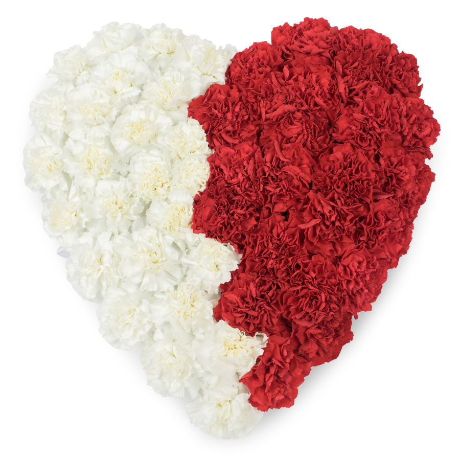 Discover the elegance and charm of our mixed carnations heart arrangement. Featuring pristine white and deep red carnations, this bouquet is expertly designed to offer a unique and beautiful expression of sympathy.